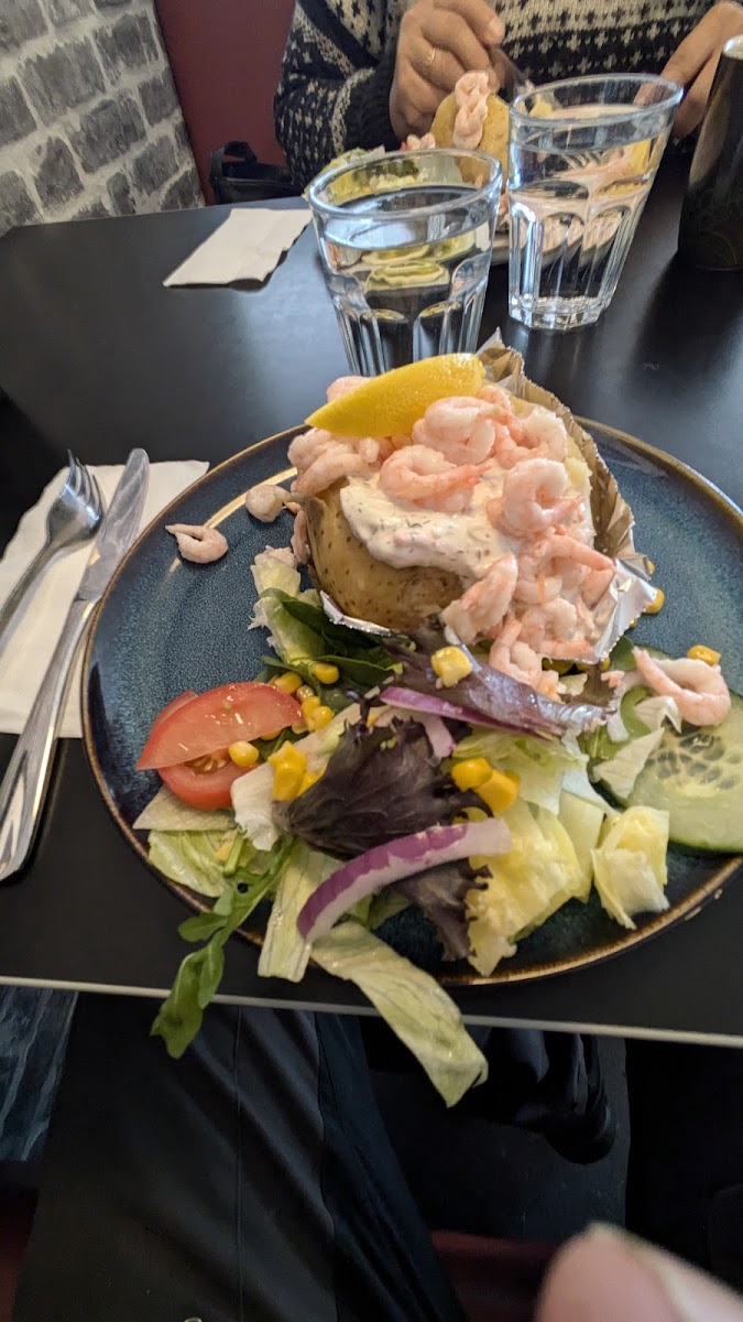 One of the highlights of the menu is the Bakad Potatis Med Skagenröra. This baked potato is generously topped with a creamy Skagenröra, a Swedish classic made with shrimp, mayonnaise, and dill. It's a dish that's both satisfying and full of rich flavors, making it a favorite for locals and visitors alike. Another crowd-pleaser is the Klämmacka Räk Skagen. This open-faced sandwich, featuring fresh shrimp and Skagenröra, is served on crunchy bread and packed with delicious, savory goodness.